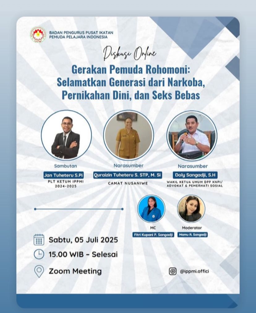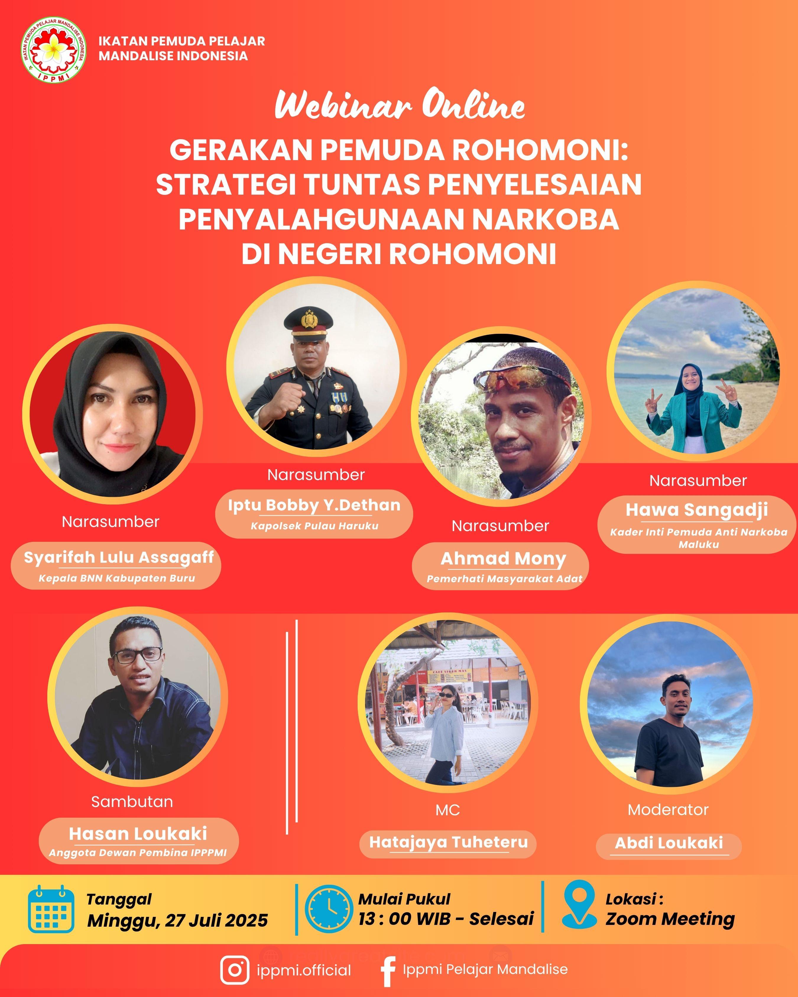 Gerakan Pemuda Rohomoni adalah sebuah inisiatif kolektif yang lahir dari keprihatinan mendalam terhadap maraknya penyalahgunaan narkoba dan degradasi nilai-nilai moral di kalangan generasi muda di Negeri Rohomoni. Gerakan ini digagas oleh IPPMI sebagai bentuk tanggung jawab untuk melindungi masa depan negeri serta menjaga marwah budaya dan adat yang selama ini di junjung tinggi di Negeri Rohomoni.